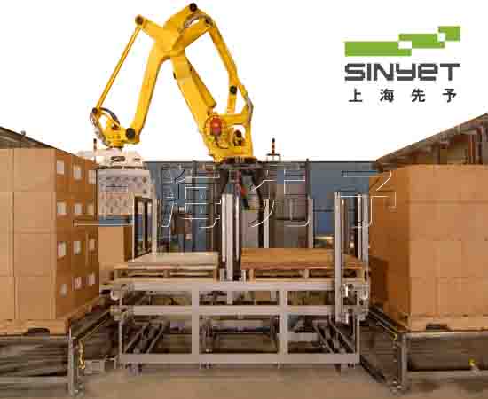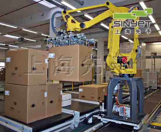 概況機(jī)器人碼垛機(jī)適應(yīng)于化工、飲料、食品、啤酒、塑料、空調(diào)等生產(chǎn)企業(yè)對紙箱、袋裝、罐裝、盒裝、瓶裝等各種形狀的成品進(jìn)行裝箱和碼垛。