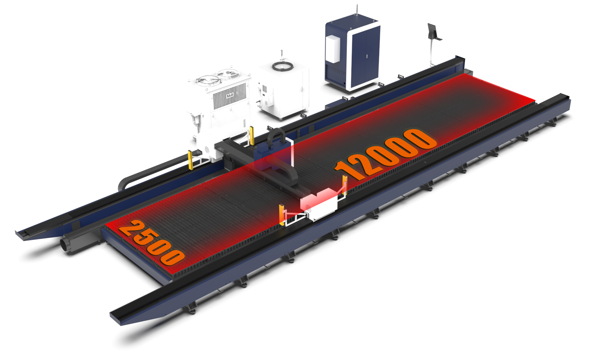 3、擁有超大幅面工作臺可根據(jù)需求定制不同長度的加工幅面,能對超長超大的特殊尺寸材料進(jìn)行切割,實(shí)現(xiàn)超長工件整體加工;,運(yùn)輸及安裝受空間限制影響更小。