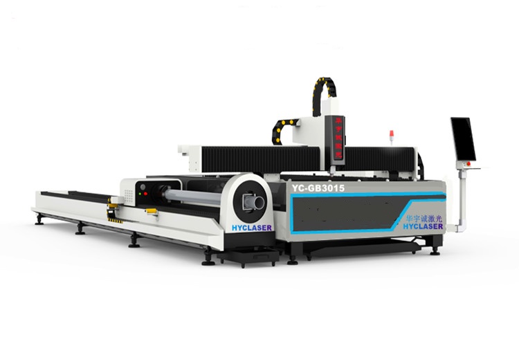 YC-GQ3015-G系列管板一體光纖激光切割機針對同時需求板材切割與管材切割客戶推出的板管一體光纖激光切割設備(管板兩用激光切割機|管板兩用金屬光纖激光切割機|管材激光切割機)。具有性能穩(wěn)定、高效節(jié)能、性價比高等優(yōu)點。YC-GQ3015-G專業(yè)切割方管、圓管、矩形管、D型管和六邊形管等各類型管材,方管□20*20 - □100*100mm,圓管Φ20-Φ150mm,管壁厚度0.5-5mm碳鋼管,0.5-3mm不銹鋼管;切割0.5~12mm碳鋼板,0.5~5mm不銹鋼板,0.5~3mm黃銅,0.5~2mm紫銅及鍍鋅板、電解板、硅鋼等多種金屬材料(厚度以及材料與激光器有關)